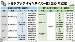 トヨタ アクアのタイヤサイズ一覧【型式・年式別】